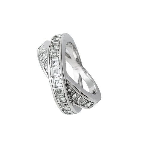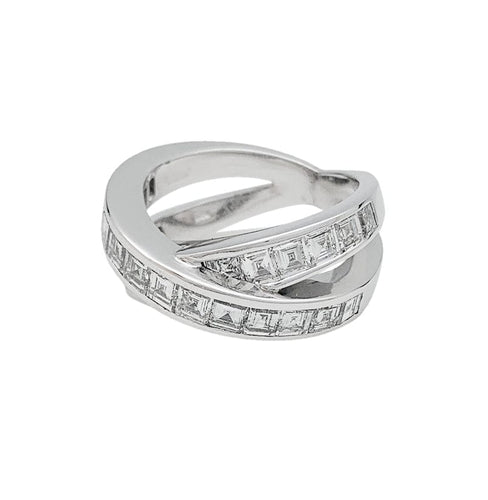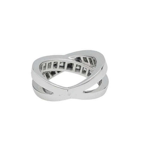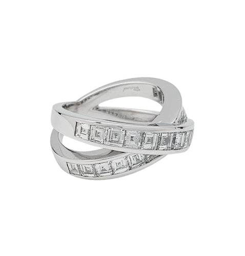 A ring branded of the House Chopard in 750/000 white gold, featuring two crossed lines decorated with 25 square-cut diamonds in degrees.