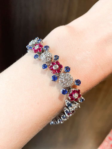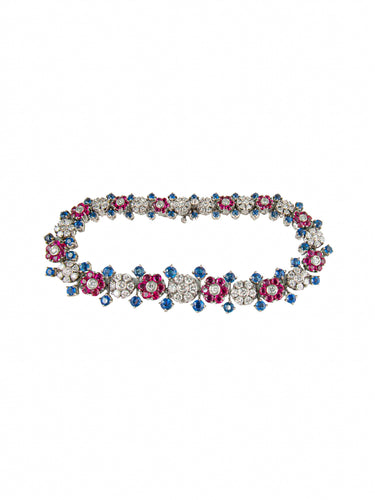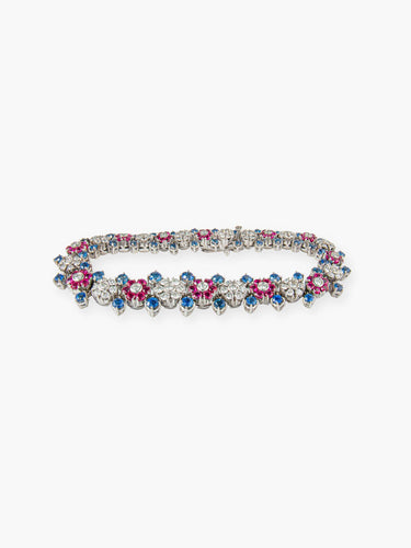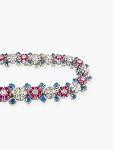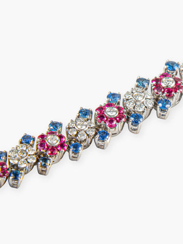 Diamond Flowers, Sapphires and Rubies Bracelet