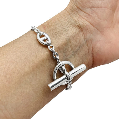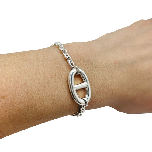 A bracelet branded of Maison Hermès in silver 925/000, “Farandole” model, navy mesh.