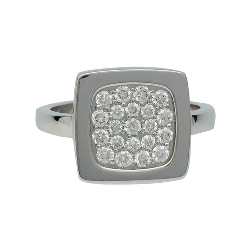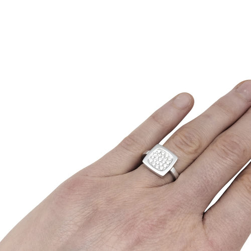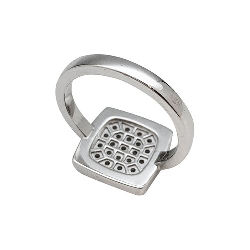 A ring branded Dinh Van, model "Impression", in 750/000 white gold whose square pattern is partially paved with diamonds.