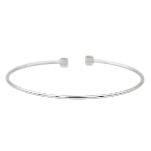 Bangle bracelet branded of the House Dinh Van in 750 thousandths (18 carat) white gold tested, model Le Cube Diamant, set with 2 brilliant-cut diamonds, approximately GH/SI, total weight approximately 0.12 ct, (each diamond approximately 0.06 ct), inner diameter: 5.55 cm x 4.13 cm, width: 0.36 cm, length: 15.00 cm, total weight: 3.17 g, excellent condition