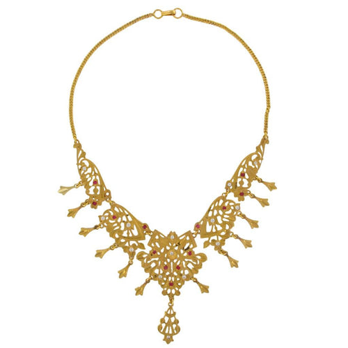 Our opinion : A massive and elaborate necklace that will not go unnoticed! The story of this jewel: Offered by Sheikh M., this necklace illuminated the happy union of a renowned Saudi family.