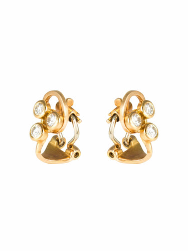 Clip-on earrings in 750 yellow gold, each decorated with three diamonds.