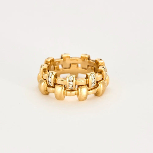 CHANEL- Pair of rings in 18K (750 thousandths) yellow gold, one set with 9 lines of three small round brilliant-cut diamonds. branded CHANEL and numbered.