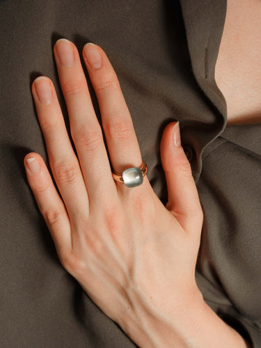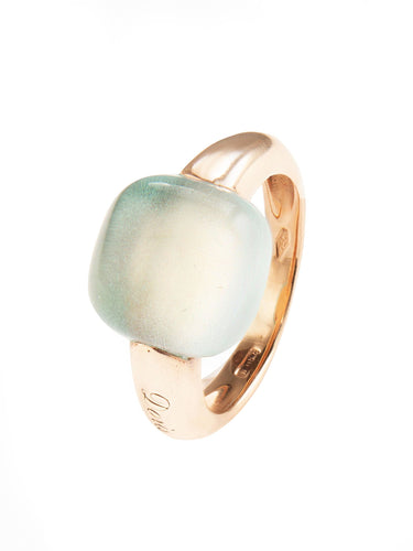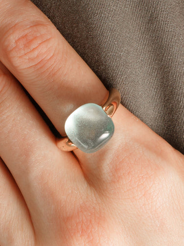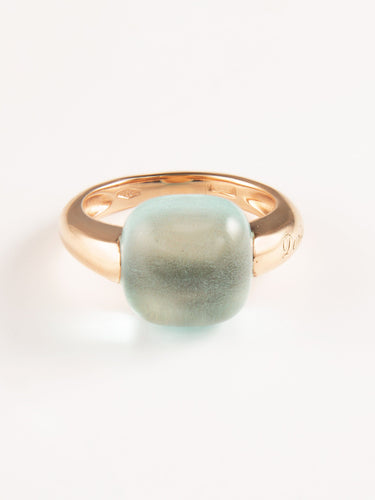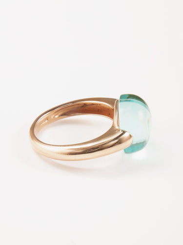 Ring branded Pomellato in yellow gold, decorated with a blue topaz.