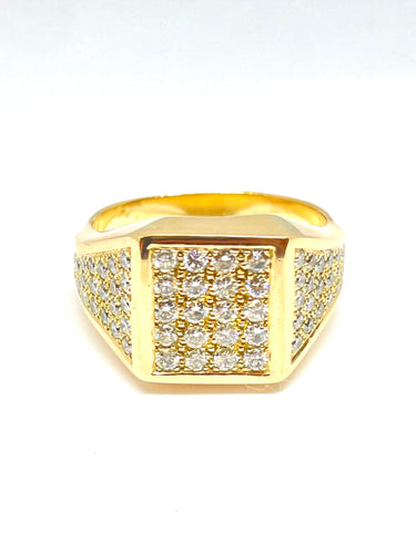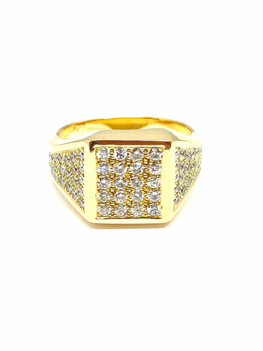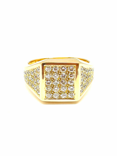 Men's ring in 18-carat yellow gold and pavé diamonds.