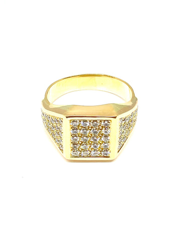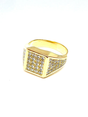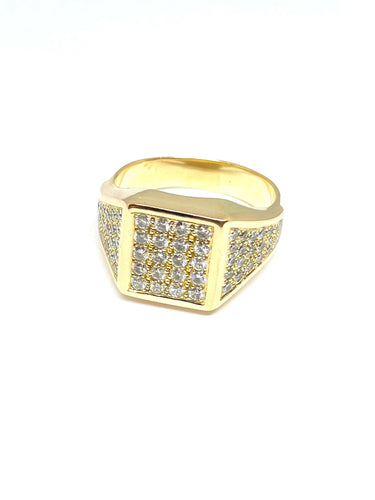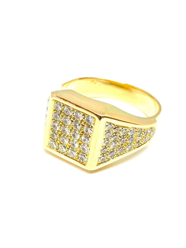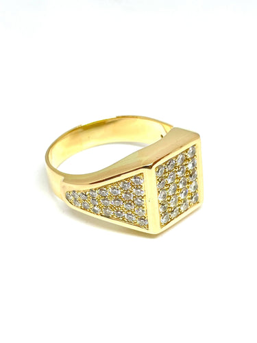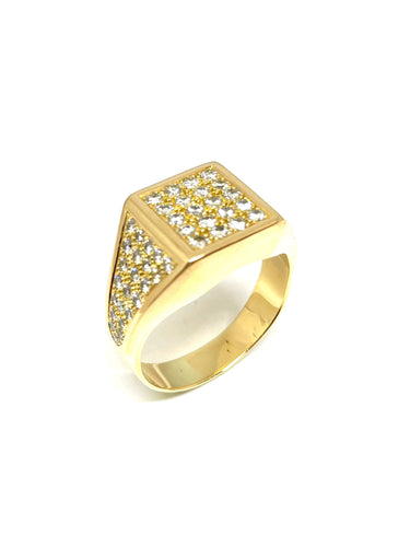 Men's ring in yellow gold and pavé diamonds