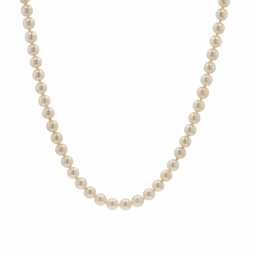 - Pearly white oriental cultured pearl necklace of identical size.