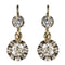 Earrings in white gold, 750 thousandths, 18 carats, eagle's head hallmark. Each antique sleeper earring is adorned with a brilliant-cut diamond which supports an antique cushion-cut diamond as a tassel. The attachment system is split and threaded from the front.