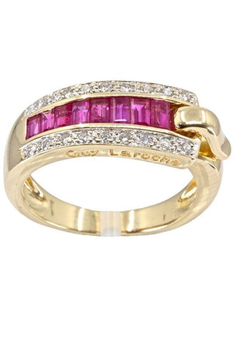 GUY LAROCHE CALIBRATED RUBY AND DIAMOND RING