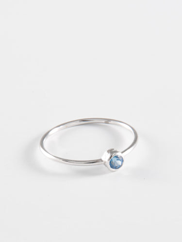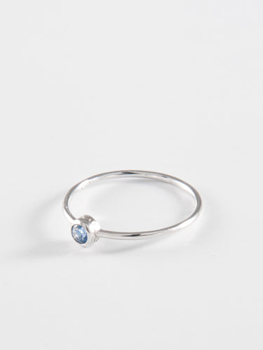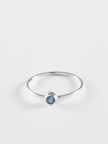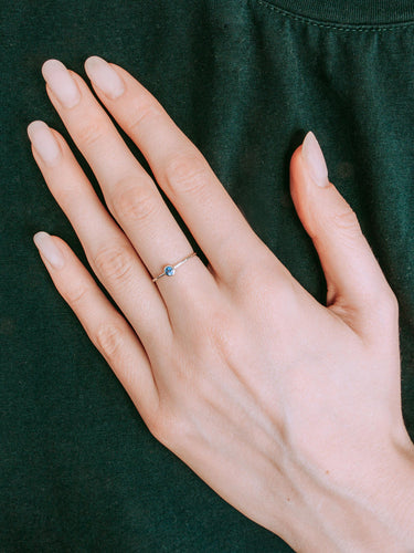 Guérin Joaillerie - Solitaire ring in 18-carat 750/1000 gold adorned in its center with a 0.12-carat blue sapphire in a bezel setting.