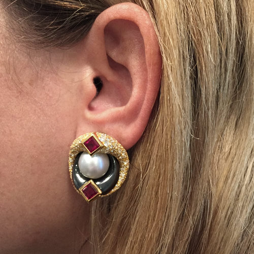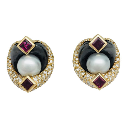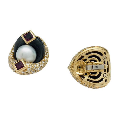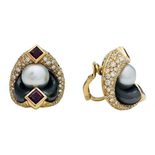 Earrings Marina B., hematite, rubies, pearls and diamonds.