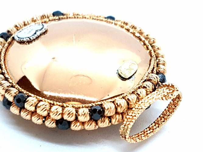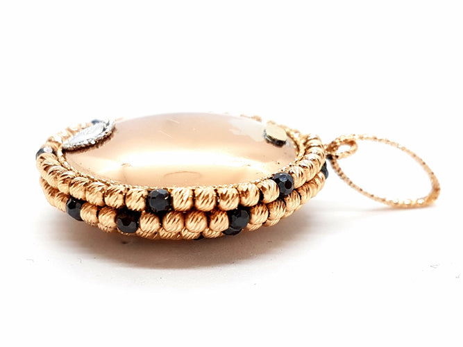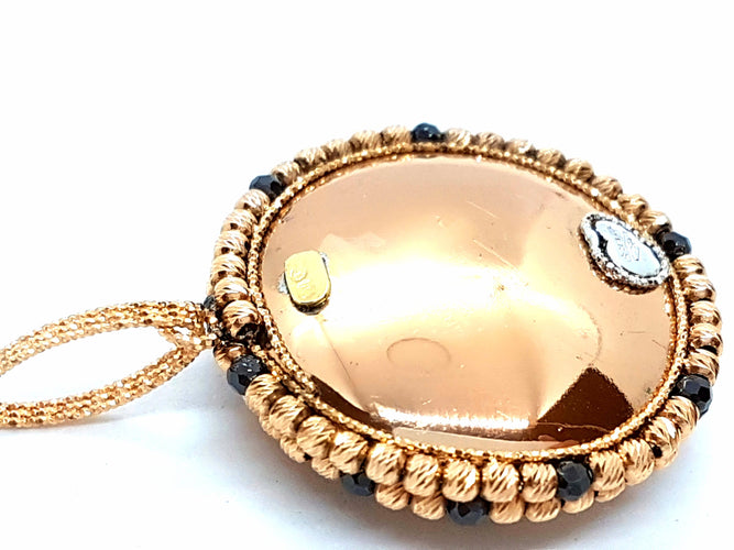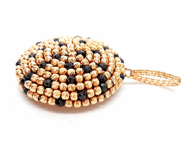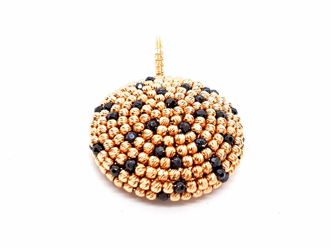 Magnificent pendant in 750 thousandths (18 carat) pink gold, formed of small chiseled balls in pink gold and a few rhodium-plated balls in black, diameter: 3 cm, total height including bail: 4.6 cm, total weight: 11.40 g, hallmark eagle head, new condition, new price: 1500 euros
