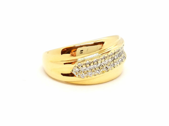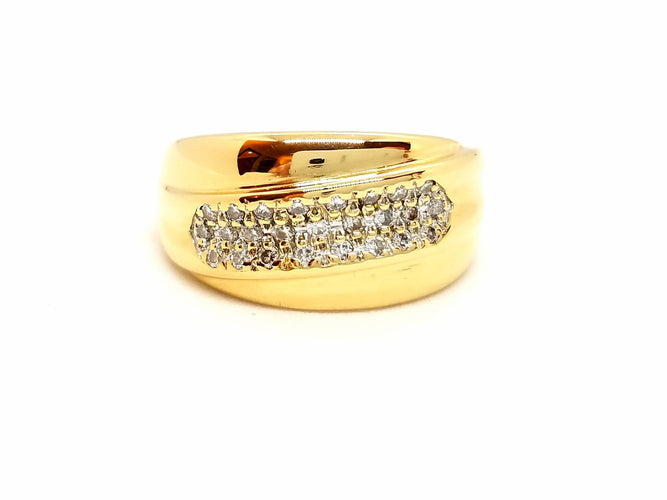 Ring in 750 thousandths (18 carat) yellow gold, paved with 25 H-SI brilliant-cut diamonds for approximately 0.16 ct in total.