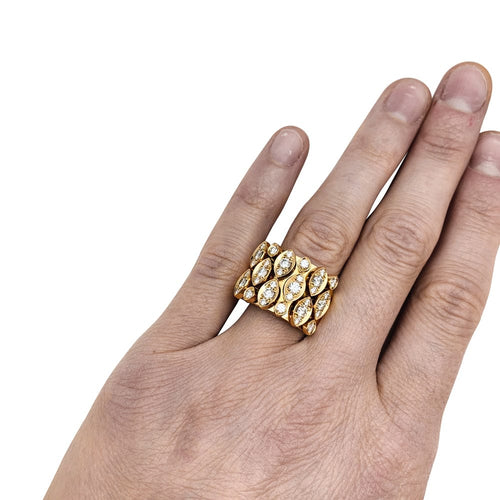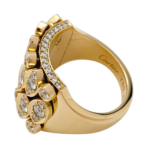 A ring branded of the House Cartier, "Diadea" model, in 750/000 yellow gold, centered with moving shuttle-shaped motifs set with diamonds. The edge of the ring body is also enhanced with diamonds.
