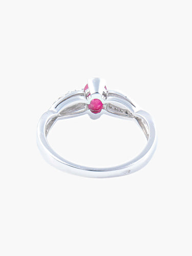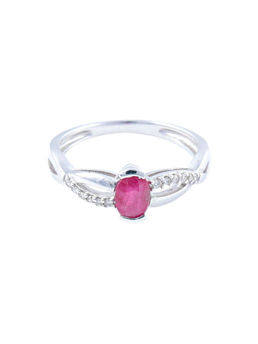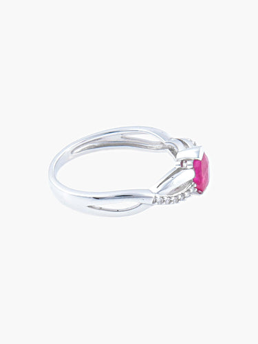 Twist ring in 18-carat white gold adorned with a ruby of approximately 0.25 carats, accompanied by diamond pavé.