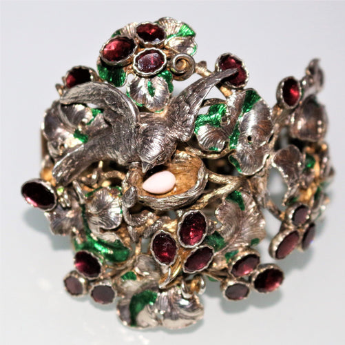 Bracelet in silver And silver-gilt "Bird defending its nest"