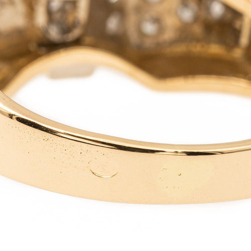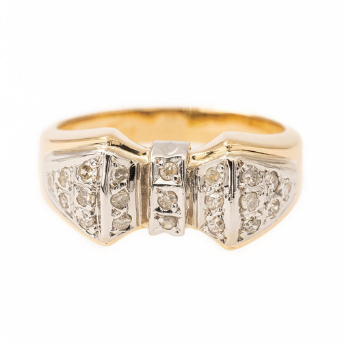 Ring Art Deco in 750 thousandths (18 carat) white and yellow gold, set with 21 brilliant-cut diamonds approximately H-SI, approximately 0.01 ct each, total diamond weight: approximately 0.21 ct, width on top: 0.80 cm, Ring size: 50.5, total weight: 5.17 g, owl hallmark, excellent condition