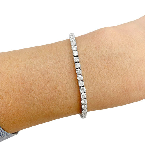 A Tennis line bracelet in 750/000 white gold set with 57 diamonds for a total weight of approximately 6 carats.