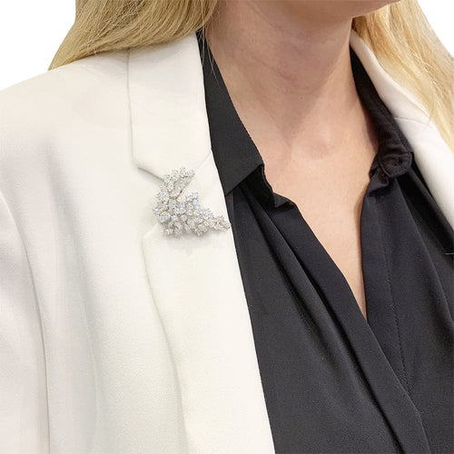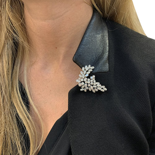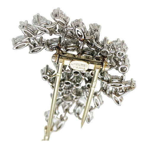 A brooch branded of the House Chaumet in platinum 950/000 and 750/000 white gold set with brilliant and shuttle cut diamonds.