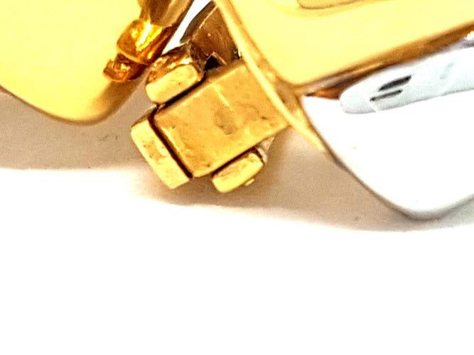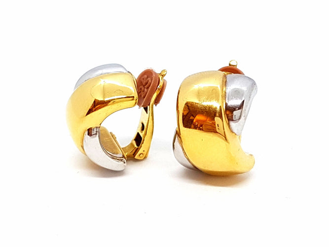 Two-tone ear clips, in 750 thousandths (18 carat) yellow and white gold, dimensions: 1.7 cm x 1.2 cm, total weight: 5.72 g, new condition