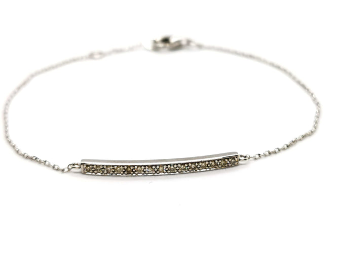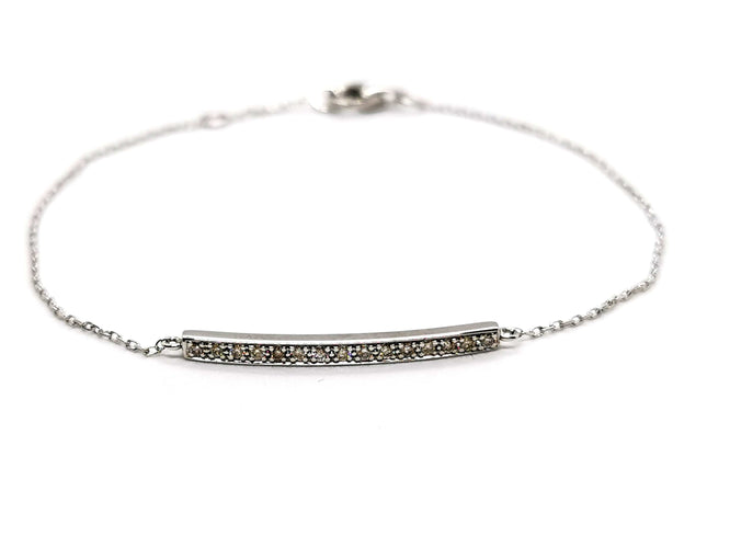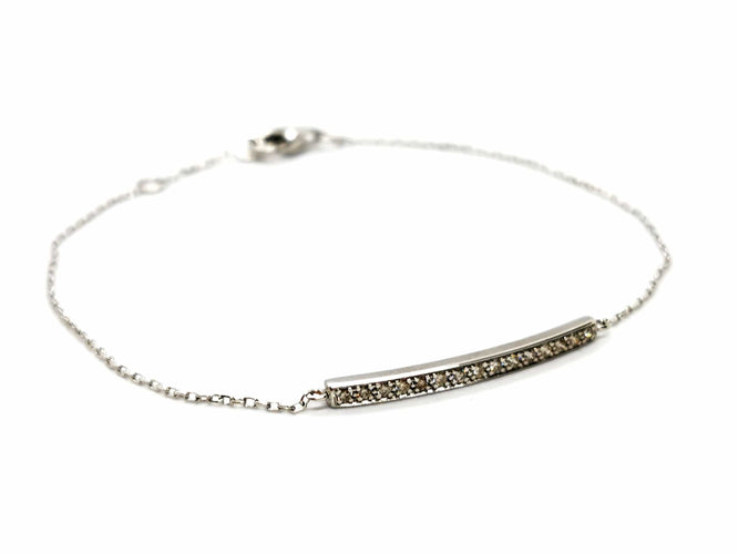 Bracelet in tested 750 thousandths (18 carat) white gold, composed of a fine convict link chain, and a rectangular bar, set with 15 brilliant-cut diamonds, approximately GH/VS, for a total of approximately 0.15 ct.