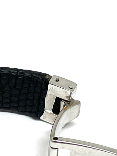 Info: the main plate and the two ends of the bracelet are in 18 carat white gold. The buckle system is made of steel