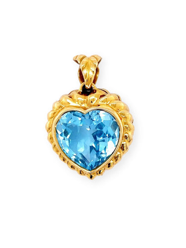 Exclusive FRED pendant in 18K yellow gold holding a significant heart-shaped aquamarine.