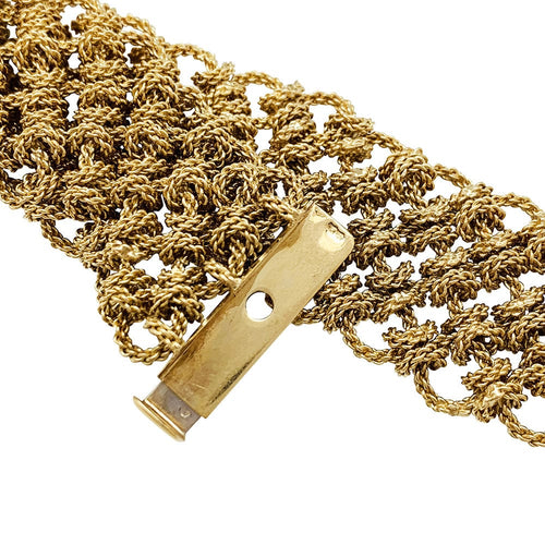 A large, supple bracelet drawing a fishnet pattern in braided 750/000 yellow gold chains.