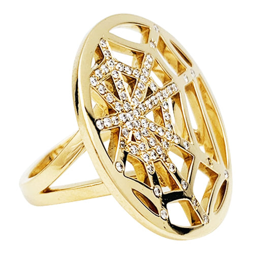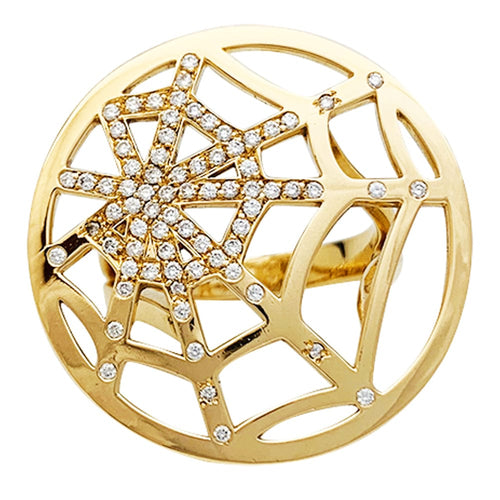 A ring Chaumet, "Catch me...if you love me", in 750/000 yellow gold depicting a spider's web partially set with brilliant-cut diamonds.