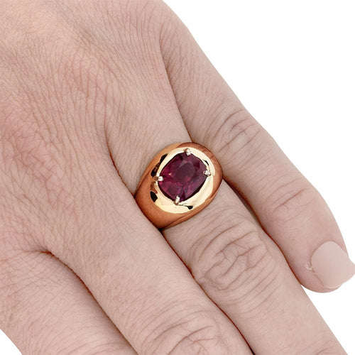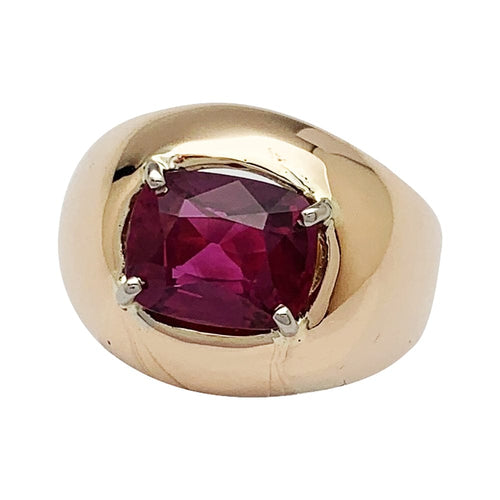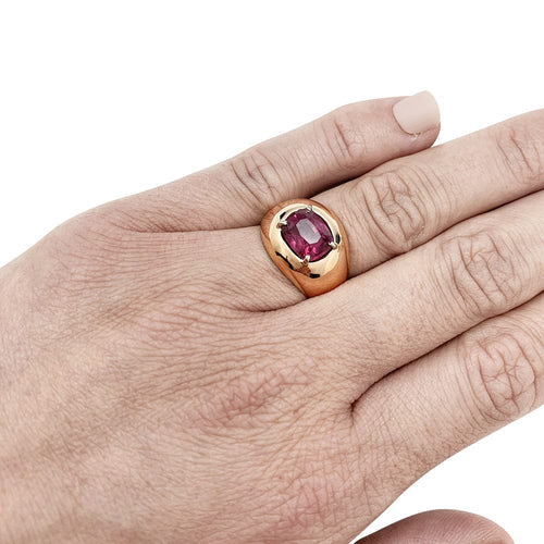 An English bangle ring in 750/000 pink gold adorned with a ruby of Mozambique origin (heated) weighing 2.53 carats.