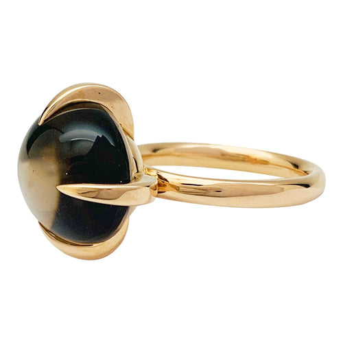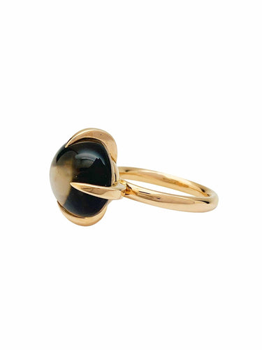 A ring branded of the House Pomellato, collection 'Veleno', in 750/000 pink gold, set with a smoky quartz cabochon on four prongs.