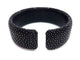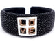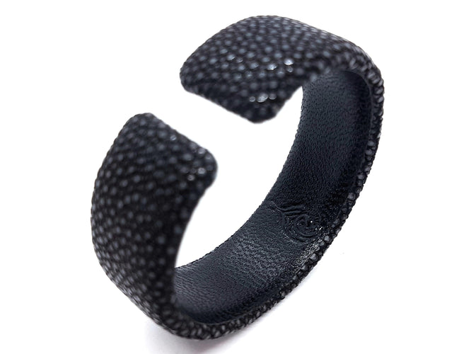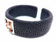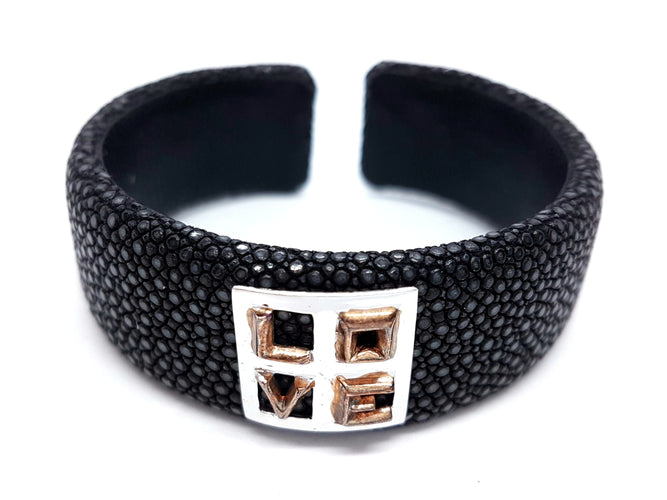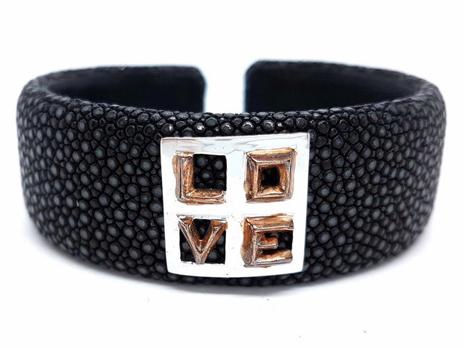 Cuff bracelet in black shagreen, decorated in the center with a "Love" in 18-carat white and rose gold.