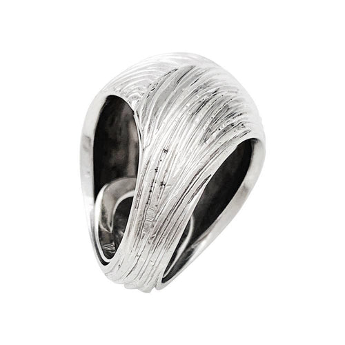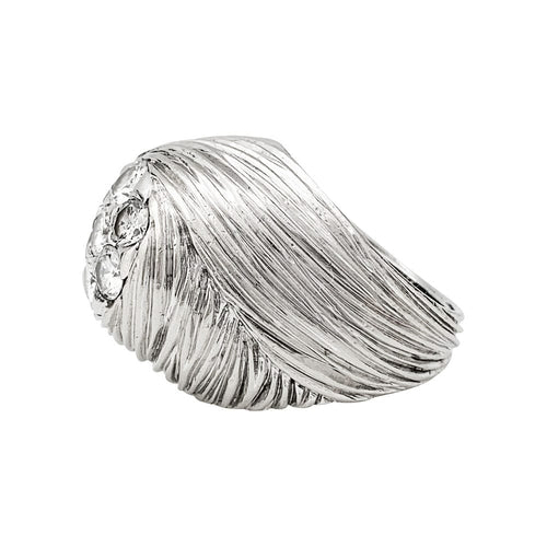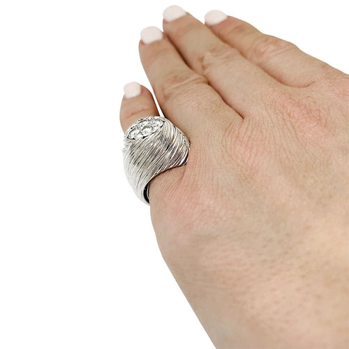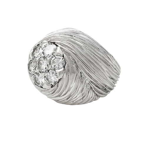 A dome ring, very pretty 'turban' model in platinum and in fully engraved 750/000 white gold, centered with seven brilliant-cut diamonds.