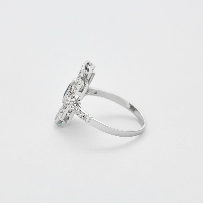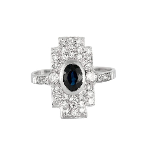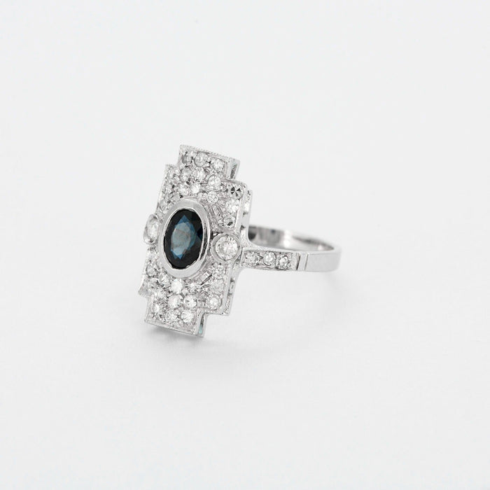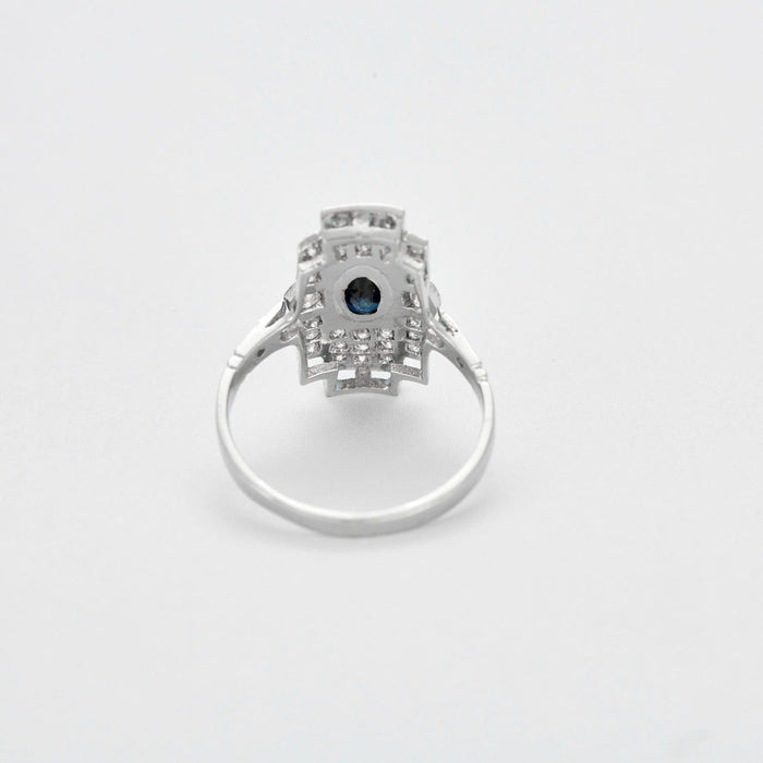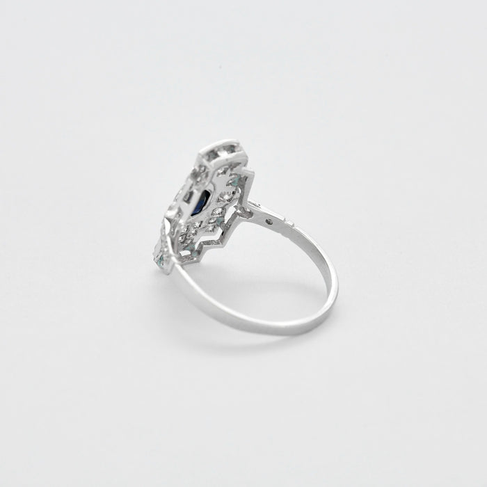Ring Art Deco in platinum, sapphire and diamonds