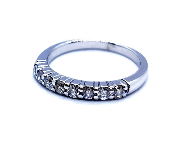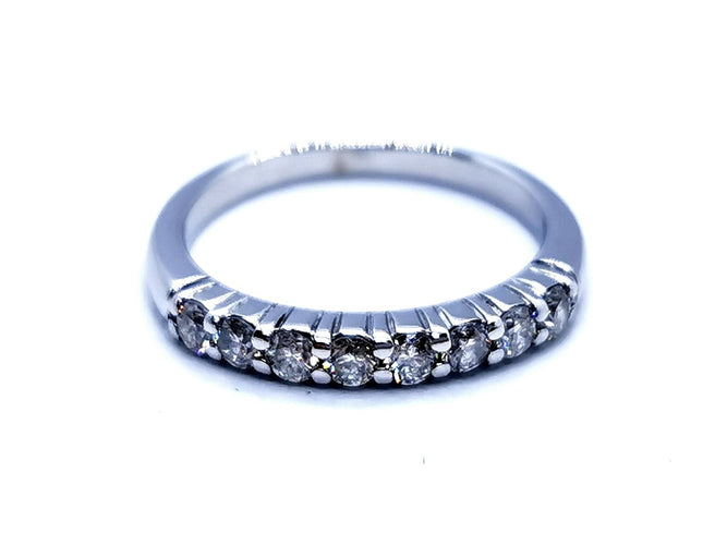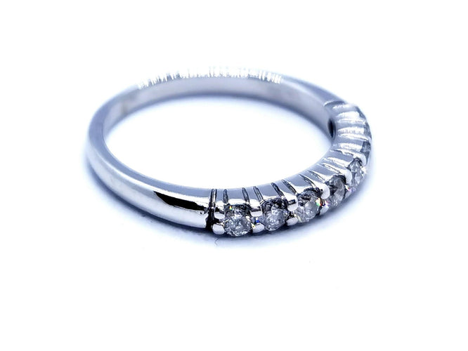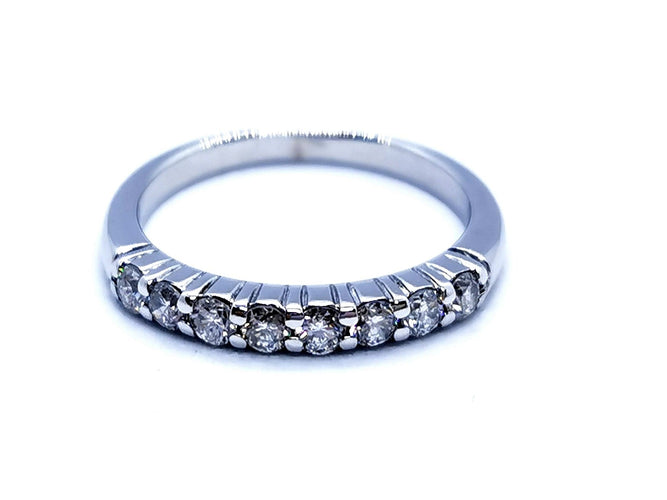 Half wedding ring, in tested 750 thousandths (18 carat) white gold, set with 8 GH VSI brilliant-cut diamonds, for a total of approximately 0.48 ct, claw setting, size: 54, width on top: 0.27 cm , total weight: 3.14 g, half-erased eagle's head hallmark, excellent condition