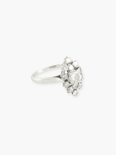 Navette ring in 18k white gold set with 12 brilliant-cut diamonds.