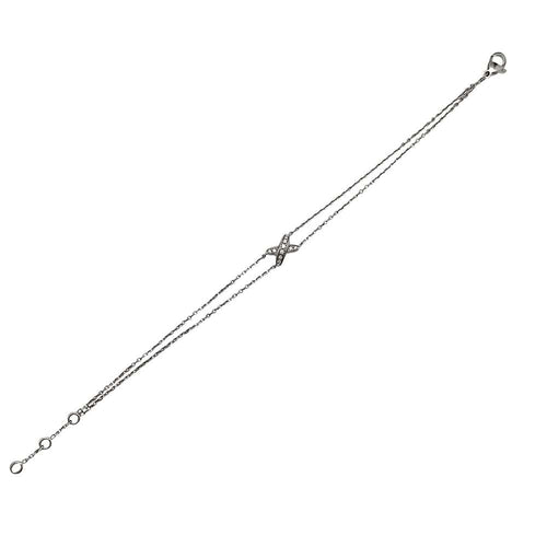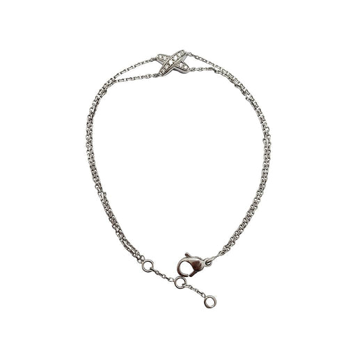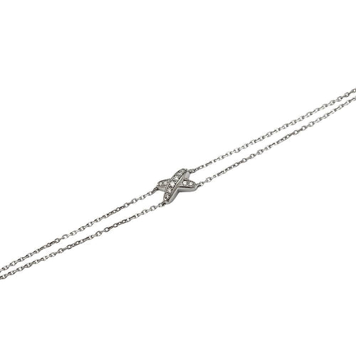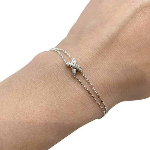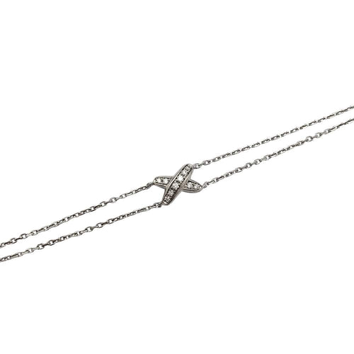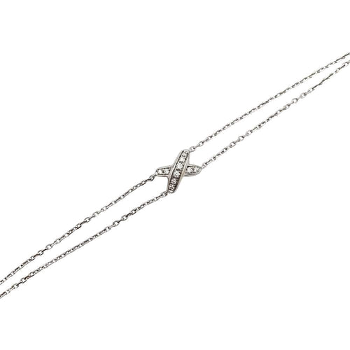 A bracelet Chaumet in 750/000 white gold, collection "Liens", composed of a crossed motif set with 10 brilliant-cut diamonds for a total weight of 0.07 ct (GVS) on a double diamond-cut convict chain.