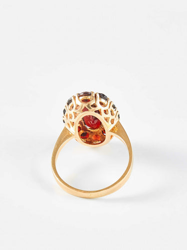 Vintage ring in 18 carat 750 thousandths yellow gold set with garnets.