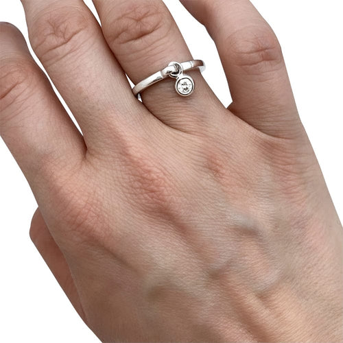 A ring branded from the House of Dior, "Coquine" collection, in 750/000 white gold decorated with a pendant set with a brilliant-cut diamond of approximately 0.15 ct.