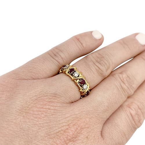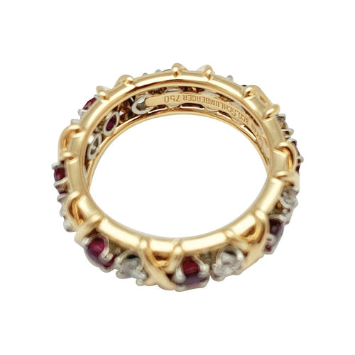 A ring branded from the House of Tiffany&Co. drawn by Jean Schlumberger, “Sixteen stones” model, in 750/000 yellow gold and platinum 950/000, set with brilliant-cut diamonds (0.57 carat) and round rubies (0.65 carat).