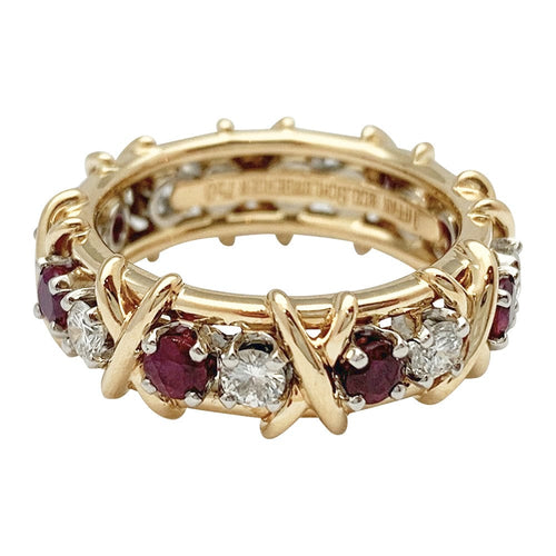 Tiffany&Co ring. “Sixteen Stones”, yellow gold, platinum, diamonds and rubies.
