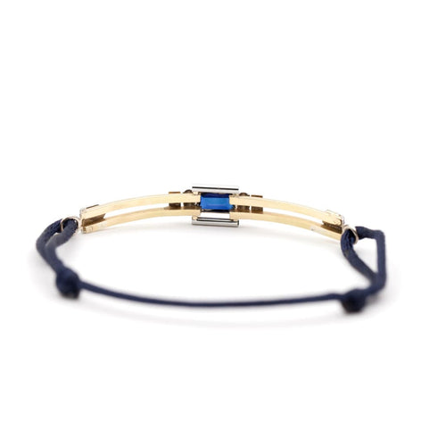 Here is the story of the metamorphosis of a brooch from the period Art Deco, a line brooch that adorned a jacket or closed a colorful scarf. This brooch has been shaped to fit perfectly on your wrist, with its airy and assertive lines. It is mounted on a midnight blue cord which matches perfectly with the color of the center stone.
