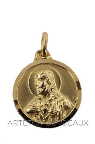 This medal called scapular represents the Virgin Mary on one side and Christ on the other.