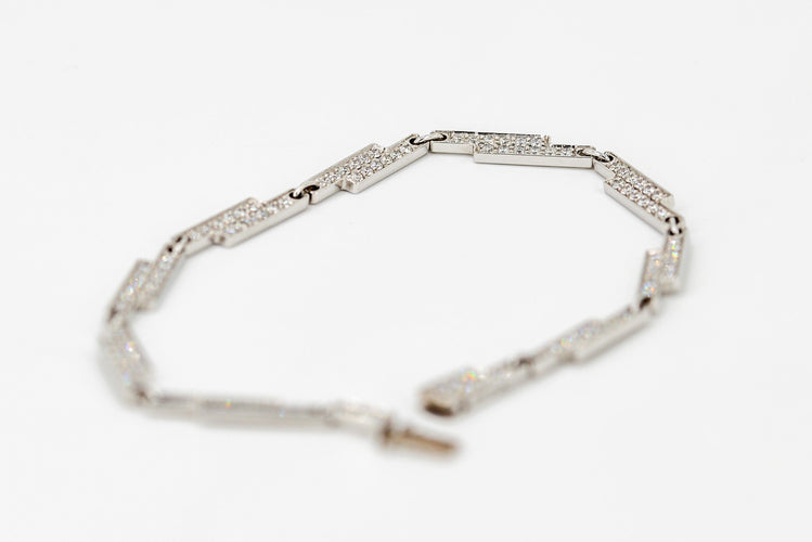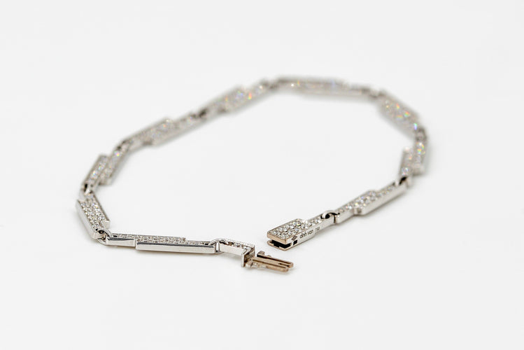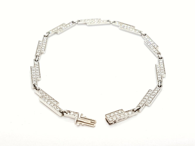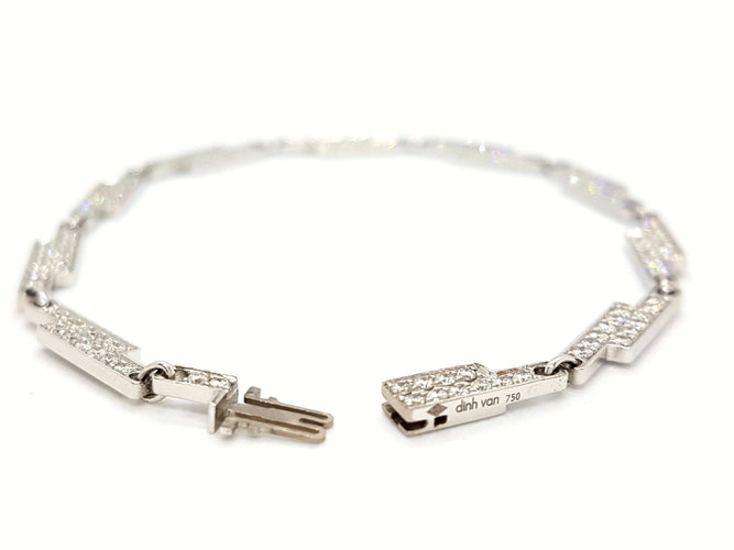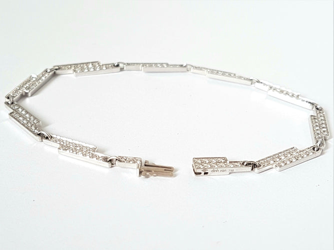 Magnificent bracelet, branded of the House Dinh Van, collection Seventies, in 750 thousandths (18 carat) white gold, paved with G/VS brilliant-cut diamonds, for approximately 1.50 carats in total.