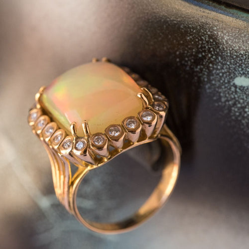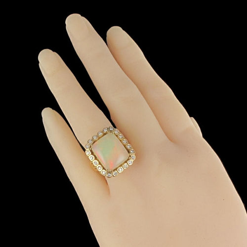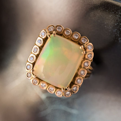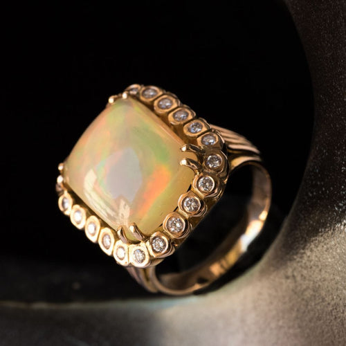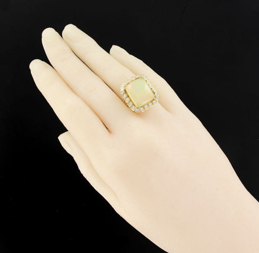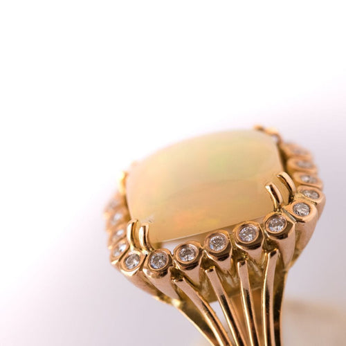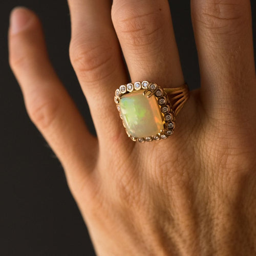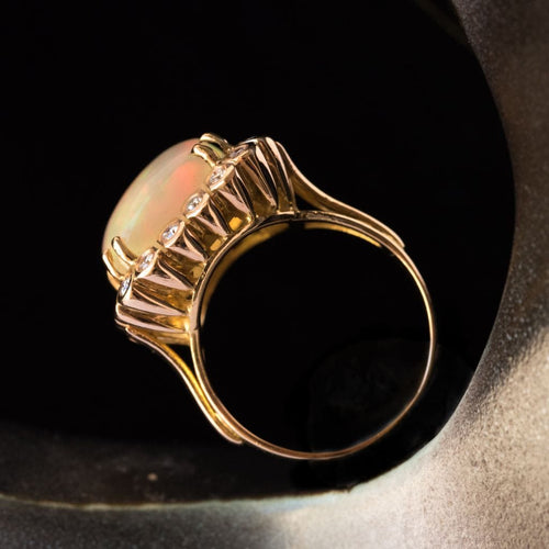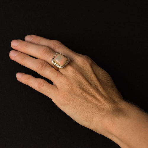 Our opinion : A sublime ring with beautiful volume on the finger. The opal is magnificent and illuminated by the diamonds surrounding it.
