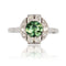 - Feminine old ring, its round-shaped setting welcomes a blue-green tourmaline in the center within an openwork decoration adorned with old-cut diamonds. The basket is openwork with arabesques.