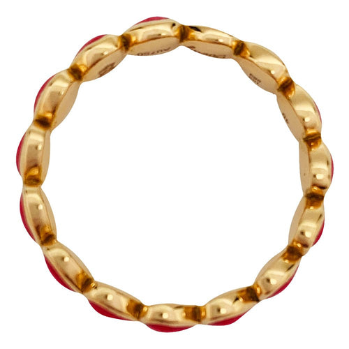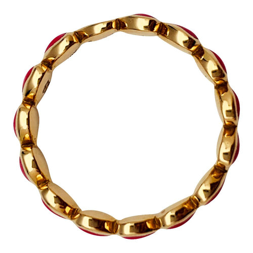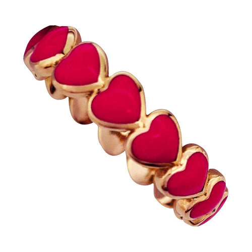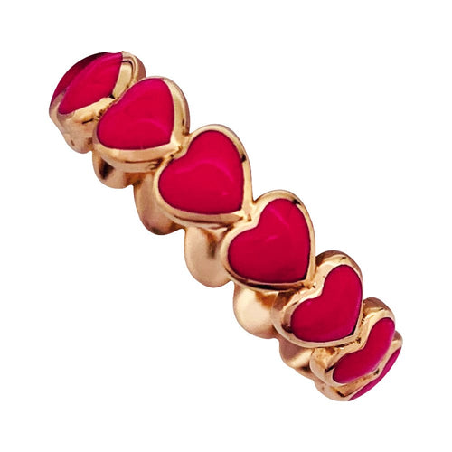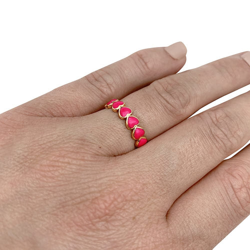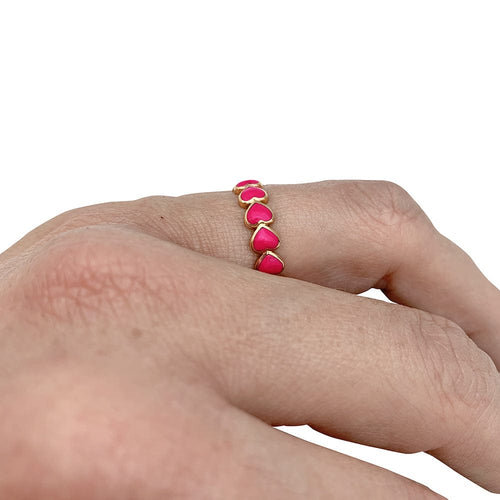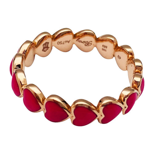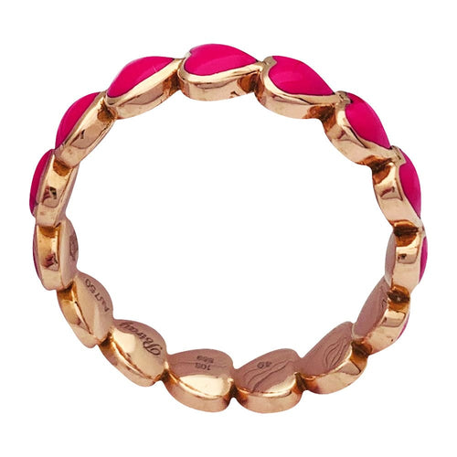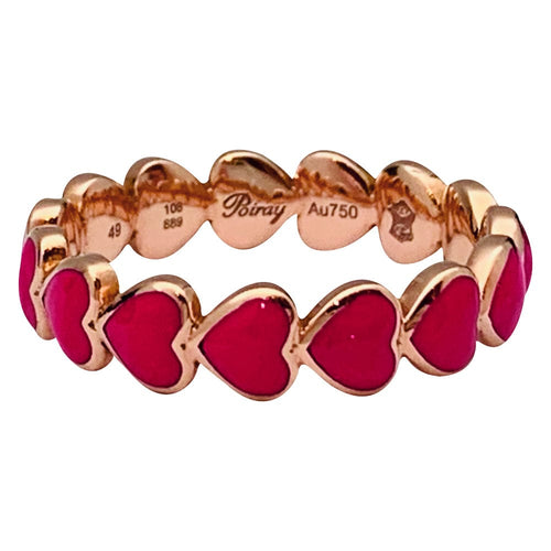 A ring branded Poiray, "Coeurs Perlés" collection, in 750/000 pink gold composed of a succession of small hearts enhanced with pink lacquer.