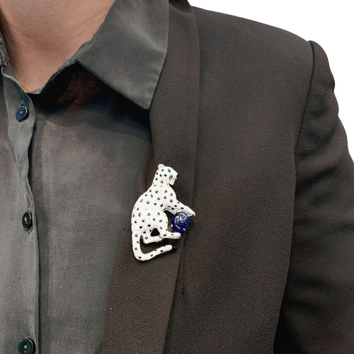 Pin Cartier “Nefertari Panthère" platinum, diamonds, colored stones, enamel.