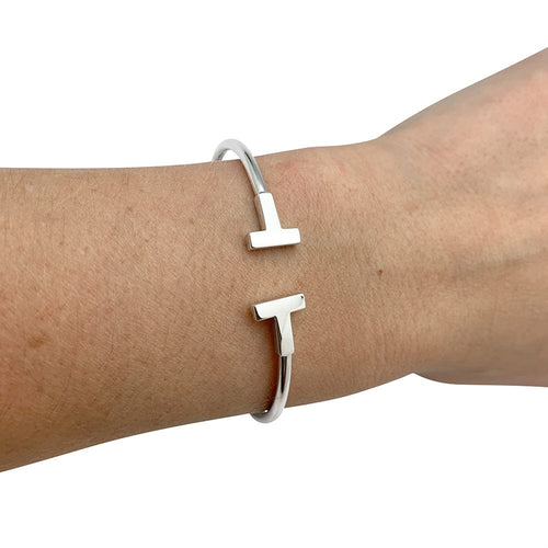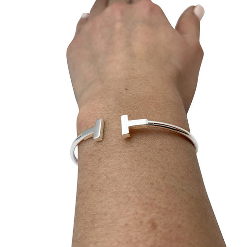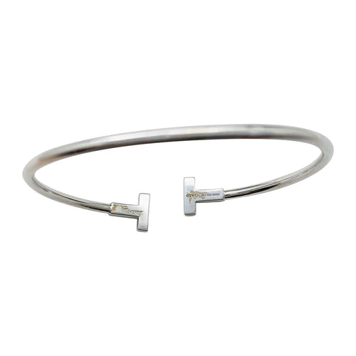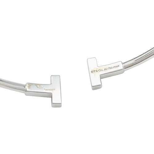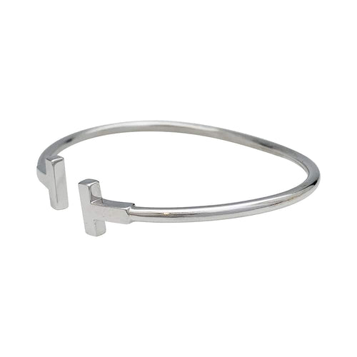 An open bangle bracelet branded from the house of Tiffany & Co., model "Wire Tiffany T", in 750/000 white gold.